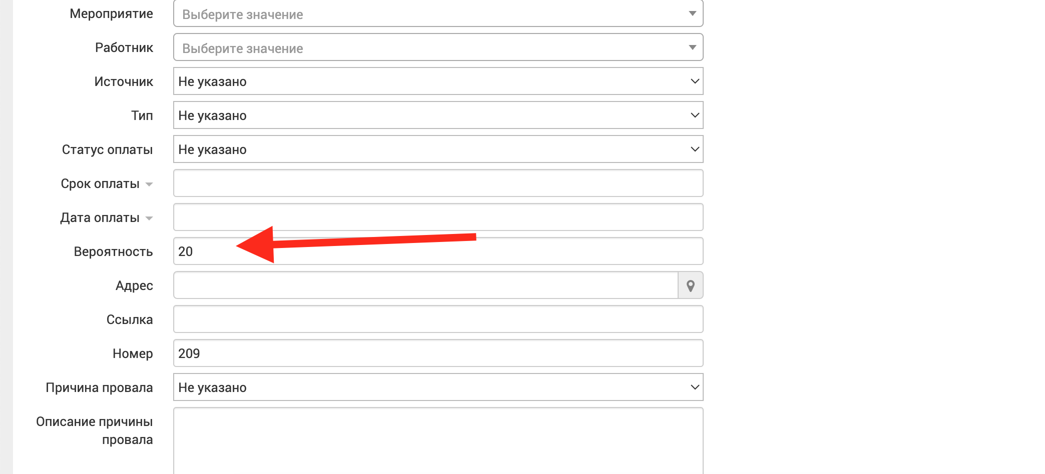 Как настроить заполнение вероятности сделки?
